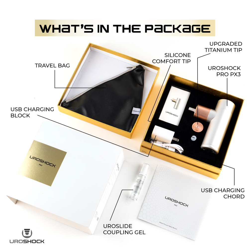- Designed for Convenience - This shockwave therapy comes with a travel bag and a rechargeable ion battery. Wherever life takes you, Uroshock is your trusted companion for revitalizing your vitality and enjoying a more fulfilling intimate life. Note: Our product is not suitable for men who have bleeding disorders or who are taking blood thinners.